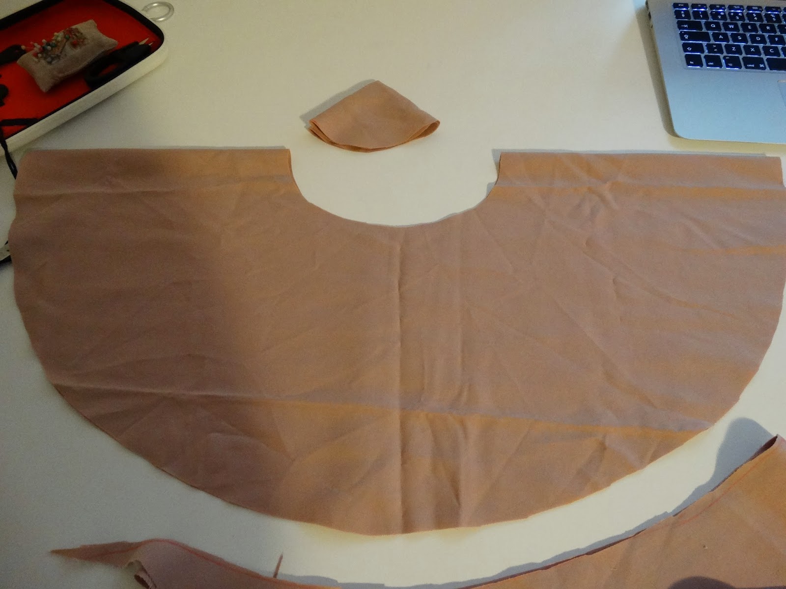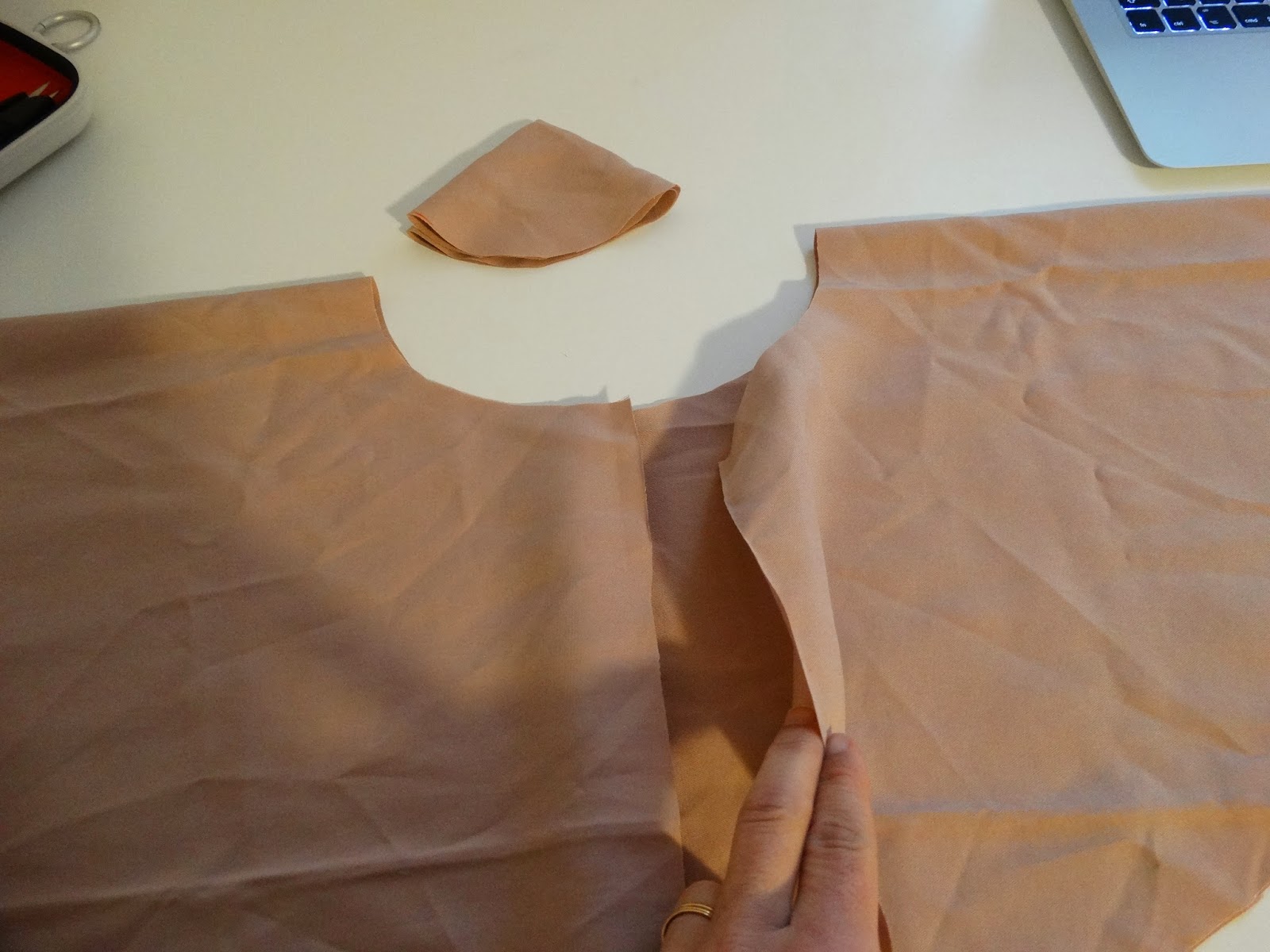 E só de um lado (só um, não cortar as duas metades de tecido juntas.) cortar ao meio.