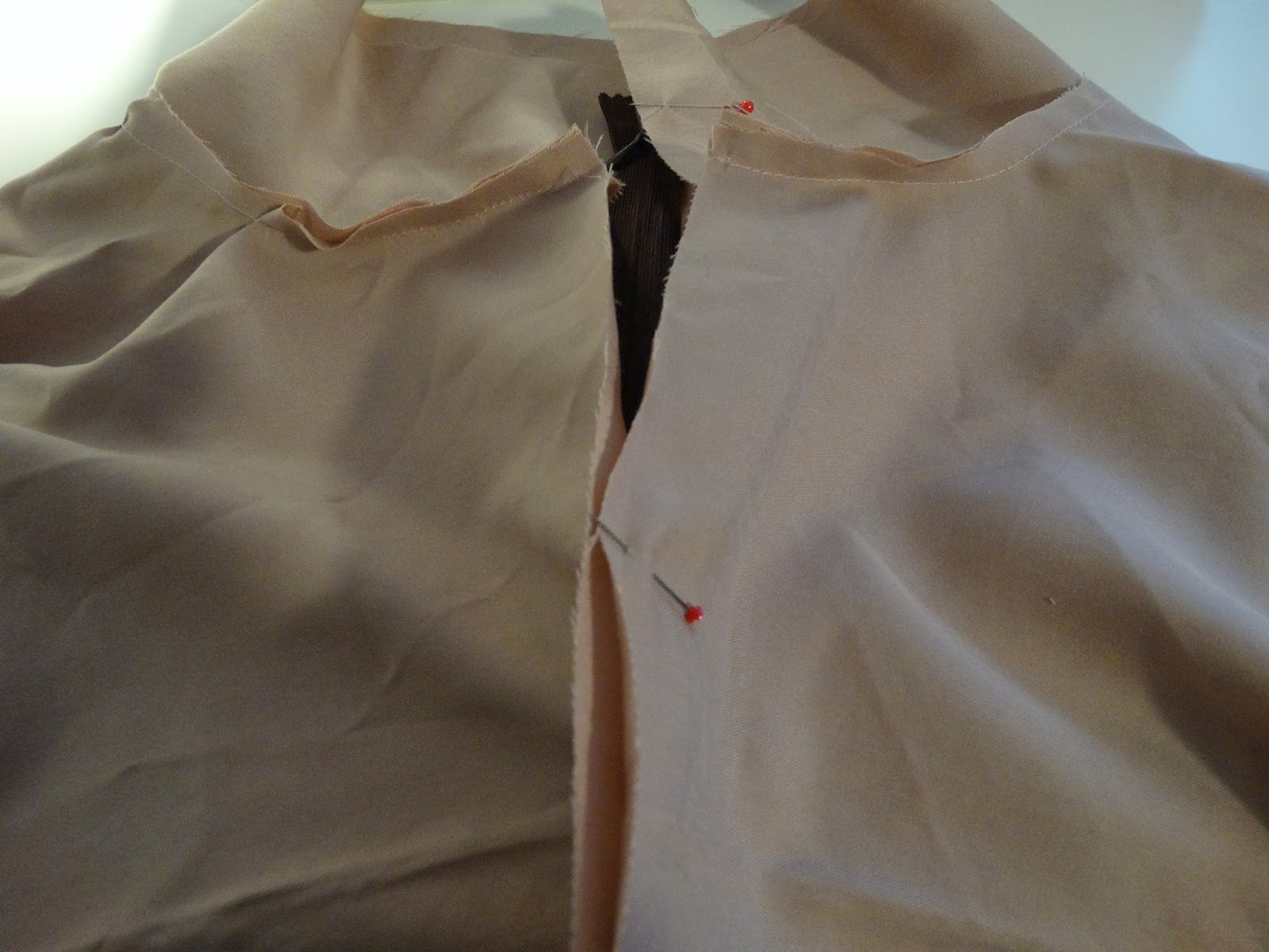 Fixar com alfinetes (ou com fita própria colante para fixar fechos).