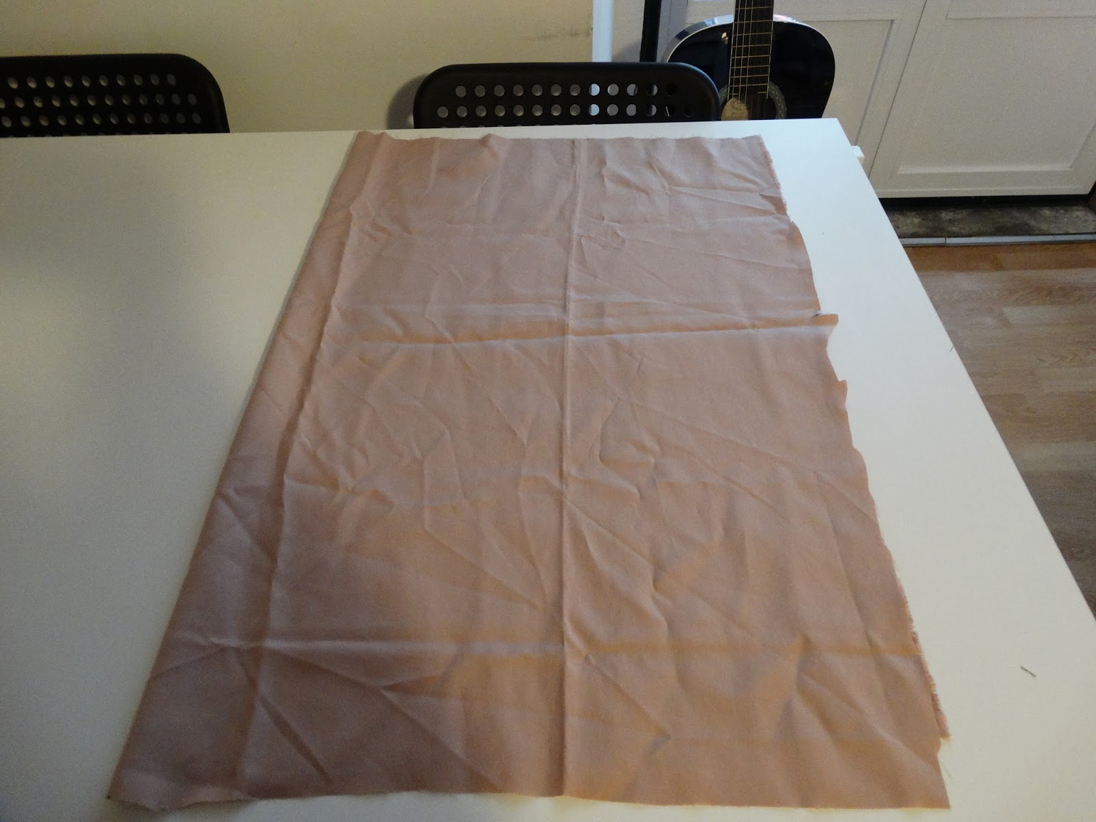 Cortar um rectângulo de tecido para a cintura. Este terá de comprimento exactamente o valor da cintura. Neste caso: 60cm. De altura terá o dobro do desejado para a faixa de cintura. Ou seja. se desejar uma altura de 5cm , terá de cortar 10.