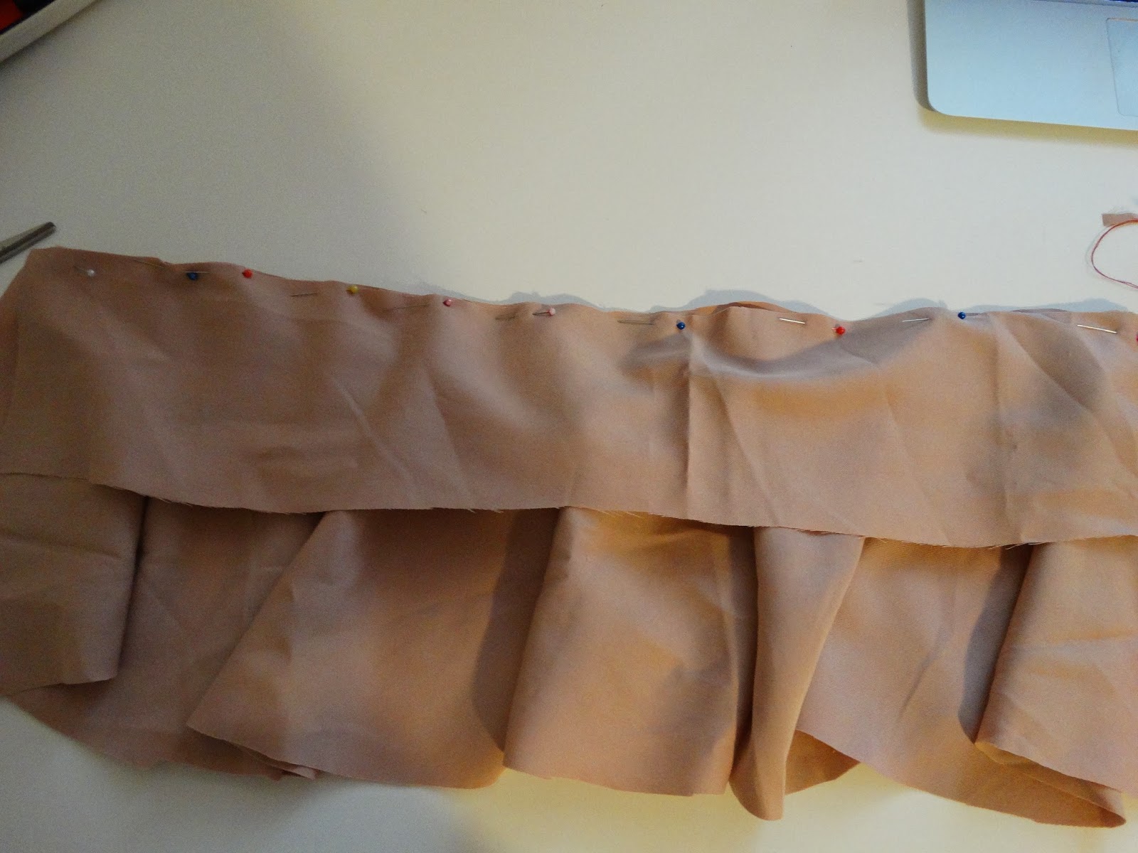 Colocar a faixa na linha da cintura da saia, fixar com alfinetes e coser.
